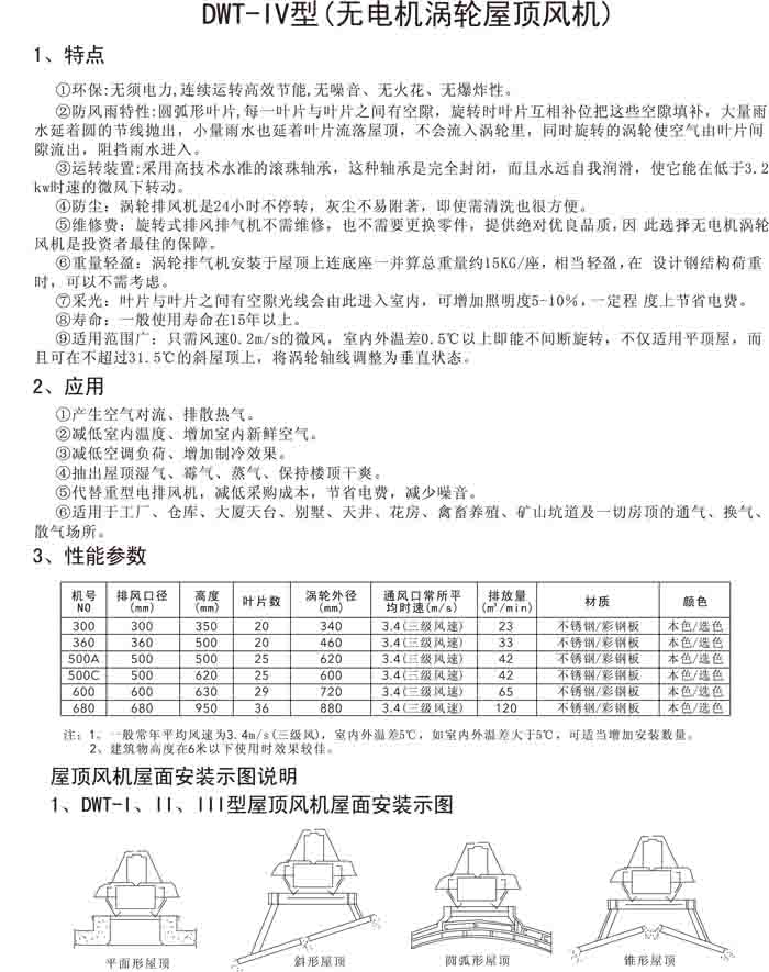 三、DWT-IV 系列無電機渦輪屋頂排風(fēng)機