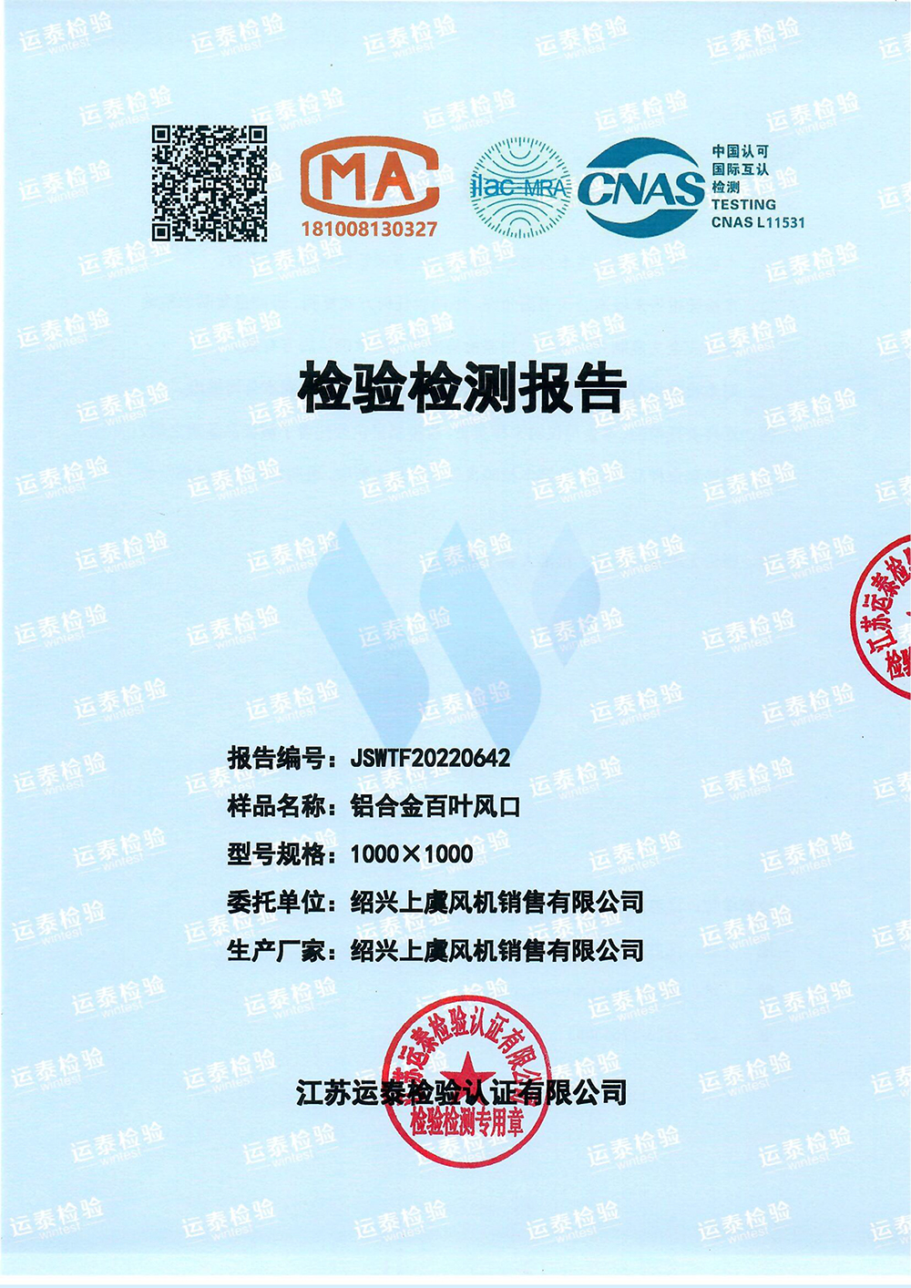 當(dāng)前位置: 首頁(yè) > 企業(yè)資質(zhì) > 產(chǎn)品檢驗(yàn)報(bào)告