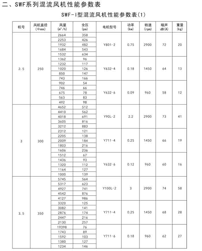二、SWF(HLF、GXF)-I、II、H 系列高效混流風(fēng)機